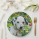 A cute seven weeks old black spotted  Dalmatian puppy, portrait in a flowery garden. A puppy-eyed baby doggy photo taken by Katho Menden, this disposable party paper plates are an enchanting gift idea for dog lovers.