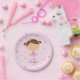Personalised Paper Plate featuring a cute dancer ballerina with a floral background. Cute and fun design for special for girls who loves ballet. Custom monogrammed gift. For no personalisation, delete sample text and leave blank. Paper Plates personalised for parties.