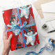 Cute Dancing Snowmen on Red Christmas Wrapping Paper