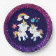 Cute Dancing Unicorns Magical Rainbow & Stars Paper Plate