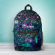 Cute dark purple green faux glitter monogram Backpack. To make it extra special, it is also monogrammed and personalised with name or initials or any text you like, click the "customise further" link and use the design tool to modify the design if you like.