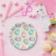 These paper plates feature cute decorated Easter eggs in pastel colours on yellow.