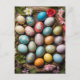 This festive Spring Easter postcard features a variety of quite colourful eggs in a basket surrounded by pretty flowers. Please feel free to add text to this holiday postcard.
