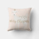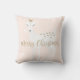 NewParkLane - Christmas Throw Pillow, with a cute deer and a snowy background in soft blush pink. With quote: 'Merry Christmas' in gold script typography.