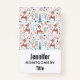 A name tag with an adorable Christmas pattern. Cute winter deer with antlers prancing around a forest of trees and grasses.