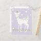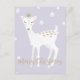 NewParkLane - Cute Christmas Postcard, with a pattern of deer and a snowy background in soft lilac. With quote: 'Merry Christmas' in gold script typography.