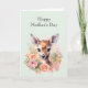 Mother's Day card with a beautiful illustration featuring a cute deer. Surrounded by pink roses and flowers.