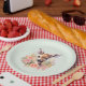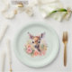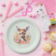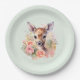 Paper plates with a beautiful illustration featuring a cute deer. Surrounded by pink roses and flowers.