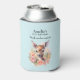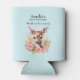 Can cooler with a beautiful illustration featuring a cute deer. Surrounded by pink roses and flowers.