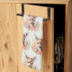 Kitchen towel with a beautiful illustration featuring a cute deer. Surrounded by pink roses and flowers.