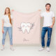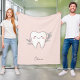 This light pink fleece blanket features a cute botanical tooth illustration and is personalized with a name in a script font.