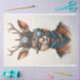 Cute Digital Steampunk Reindeer Image D6 Decoupage Tissue Paper