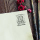 This book rubber stamp features a cute dino mum reading to her baby, with a custom name.