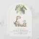 Dinosaur Birthday Party Invitation. Arch. Any Age. Cream background.