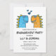 Cute dinosaur couple cartoon engagement invitation