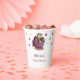 Adorable paper cups with an illustration of a baby dinosaur hatching from its purple egg. Personalised the text with your own information. Illustrated by Patricia Alvarez.