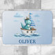 Personalised adorable Captain Dino Sailboat blue bath mat! Picture a charming dinosaur captain navigating the high seas aboard a charming sailboat. This captivating design blends cuteness with adventure, perfect for inspiring imaginative play.