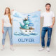 Cute Dinosaur Nautical Captain Personalised Blue Fleece Blanket