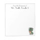 Imagine surprising your favourite teacher with this simple but fun Notepad or buying it for yourself. Design features the text "From the Classroom of Mr. Smith, Grade 5" along the top (which is customisable) and an illustration of a cute, adorable T-Rex dinosaur wearing black glasses and holding a pencil located on the bottom right of the Notepad. Fun item to add to the classroom!