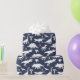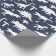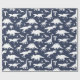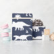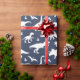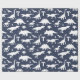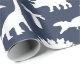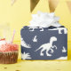 Whimsical dinosaur patterned gift wrap in navy blue and white