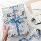 Cute Dinosaurs Footprints & Custom Name Light Blue Wrapping Paper