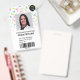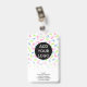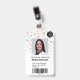 A modern, and professional cute watercolor dinosaurs paediatrician doctor or nurse photo id badge with logo and barcode.