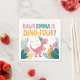 Make your little one's dinosaur-themed birthday extra special with these personalised party napkins! Featuring a cheerful pink dino in a party hat, surrounded by vibrant tropical foliage and flowers, this design brings a playful charm to your celebration. The fun text "Rawr, [Name] is Dino-Four!" can be customised with your child's name and age, making it perfect for any age milestone. These napkins are both stylish and practical, adding a whimsical touch to your party decor!