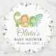 Add a personal touch to your baby shower celebration with these stylish and memorable party items! Design features dinosaurs (brontosaurus, triceratops, tyrannosaurus rex) and greenery on white background.