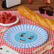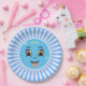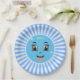 Cute divine happy face and blue and white rays Paper Plate. Text can be personalised. Ideal for Birthdays, Baby showers, and any other party celebration or just for fun!