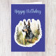 This adorable Doberman dog birthday card includes a cute Doberman dog in a birthday hat graphic as well as a custom saying on the inside. This design also includes a blue background. Enjoy this Doberman puppy birthday card!