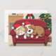 Celebrate the joy of Christmas with this sweet illustration of a cat and dog snuggled up on a cosy couch, both wearing Santa hats. Perfect for adding warmth and charm to your holiday cards and decorations!