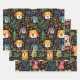 Cute little dogs decorate this set of 3 wrapping paper sheets delightful for your Christmas gift wraps. So much fun for your doggie loving friends and family members. The design is inspired by the festive and colourful art of the fauvists and also has a bit of a folk art flair and heritage. Each of the 3 sheets is different, but they are compatible for gifting together. The black background enhances the colourful appearance. Along with the pet images are fun Christmas trees, greenery, and imaginative berries, leaves, and other holiday decorative touches.