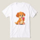 Cheerful and cute dog illustration printed on a T-shirt. Great for dog lovers or casual wear.