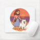 Cute Dog Mom Walking Fluffy Pup on Sunset Beach Mouse Mat