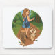 Cute Dog Mom Walking Puppies Forest Trail Illustra Mouse Mat