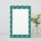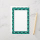 Stationery designed with a repeating pattern featuring a cute smiling doggy with floppy ears and a dog bone. Green background. A white frame with a black border layered over top to write on.