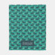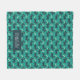 A personalised blanket perfect for your pet, designed with a repeating pattern featuring a cute smiling doggy with floppy ears and a dog bone. Green background.