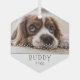 Cute Dog Pet Photo White Stars Christmas Glass Ornament. Add your photo, name and year and make a sweet keepsake for a dog owner.