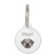 A cute dog tag with a flat illustration of brown pug. Personalise it with your dog's name.