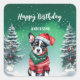 Cute Dog Puppy Christmas tree birthday girl party Square Sticker