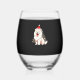 Cute Dog wearing Santa hat and Christmas tree Clas Stemless Wine Glass