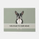 Here is a cute Boston Terrier welcome floor mat for the entrance to your home with a welcome message banner template you can personalise with your own text or personalised message.