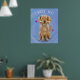 Cute hand painted illustration of a golden retriever with a bone in her mouth with a text above that says "i woof you."