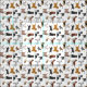 Fabric for dog lovers, featuring illustrations of golden retrievers, border collies, Jack Russell terriers, spaniels, basset hounds, beagles, Dalmatians, golden doodles, Labrador retrievers, and mixed breeds.