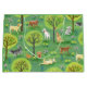 Cute mutts and playful dogs run through a green dog park filled with trees and blooming flowers. A started cat watches carefully while a curious squirrel stares down at a sitting dog. My illustration was inspired by vintage Little Golden Books of the mid century.