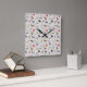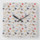 Thiny Stylish Cute Different Types Of Dogs Pattern Design White Background with a faded reflection effect WALL CLOCK. #wallclock #dogclock