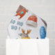 This cute Christmas design showcases cartoon reindeer, dogs, trees, mittens, and hats. Perfect for decoupage artwork, paper crafts, or gift wrap.