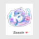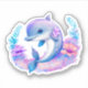 Contour sticker with an adorable illustration. A blue and purple dolphin surrounded by pretty colourful underwater plants.