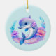 Ornament with an adorable illustration. A blue and purple dolphin surrounded by pretty colourful underwater plants.