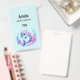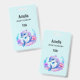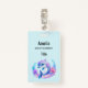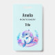 Name badge with an adorable illustration. A blue and purple dolphin surrounded by pretty colourful underwater plants.